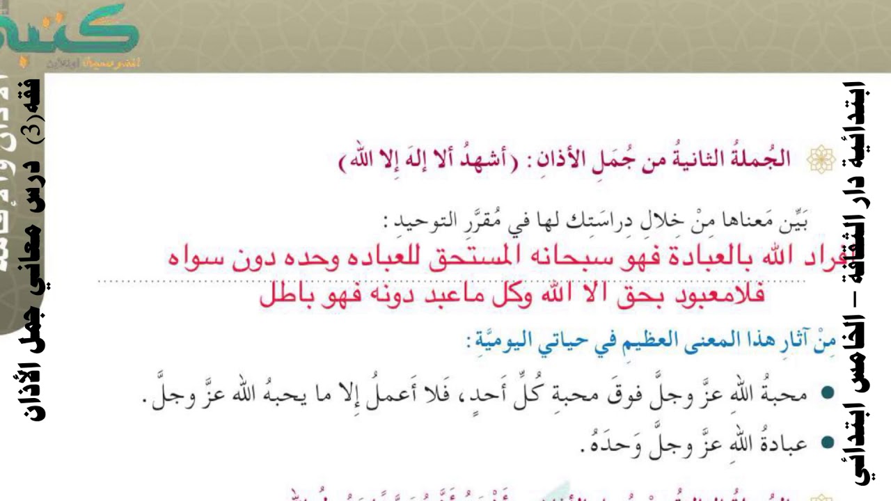 فقه3 الصف الخامس درس معاني جمل الأذان Youtube